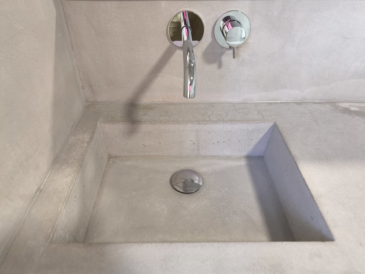 Nous utilisons exclusivement la gamme de béton ciré Marius Aurenti, qui est minéral à 95%, classifié A+ (pas d’émission de COV).